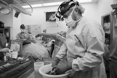 In July 2023, surgeons prepared to transplant a pig kidney into a brain-dead patient in New York. Image source: Shelby Lum